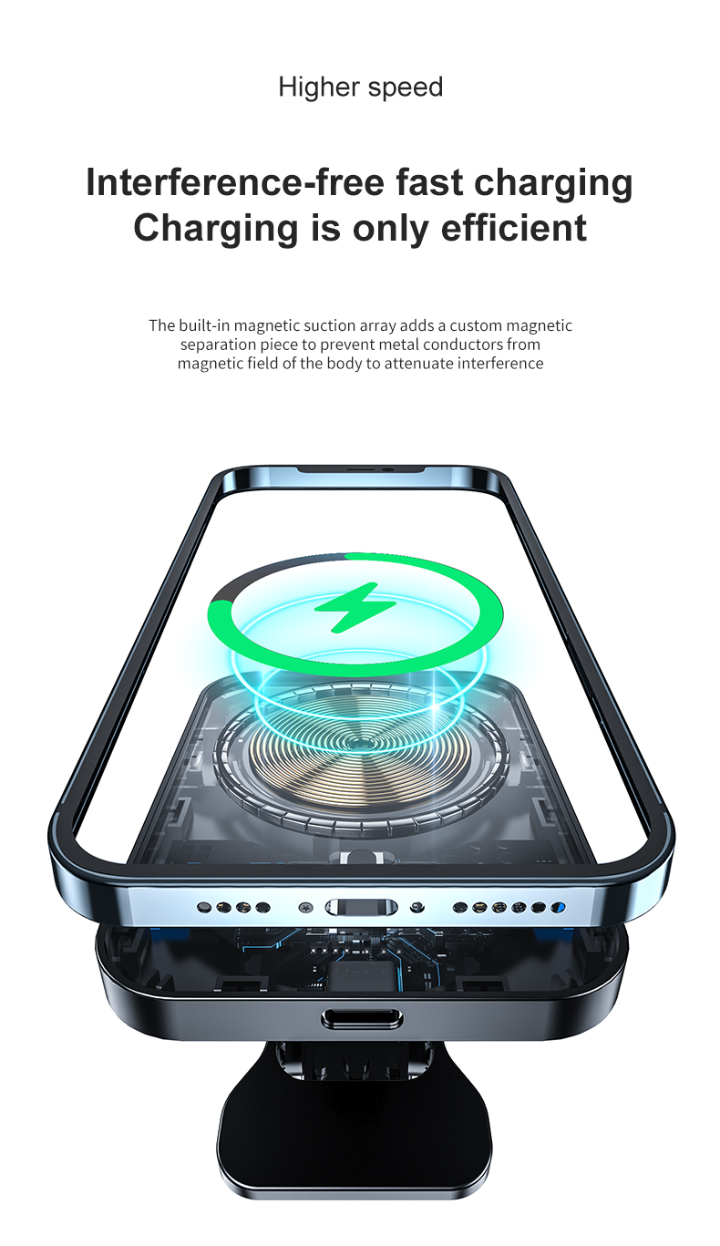 The powerful magnetism fixes the phone together without sliding, allowing your phone to be completely concentrated on the charging board to speed up charging.